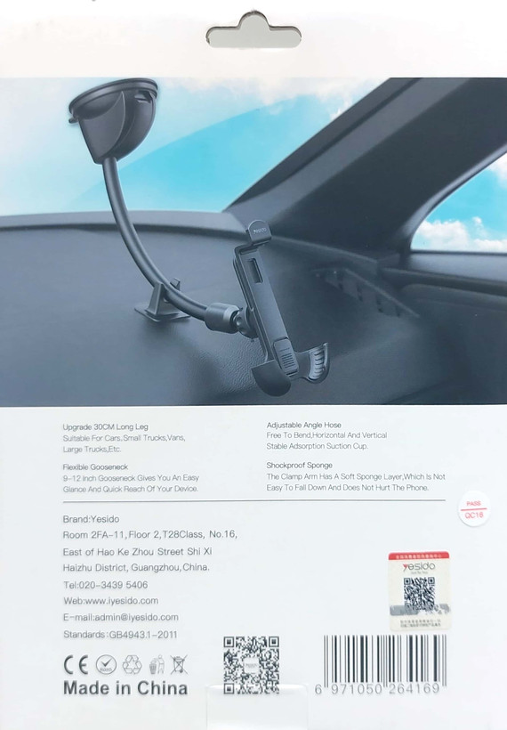 هولدر داشبوردی گیره ای Yesido CH06 بر روی شیشه، داشبورد و سطوح صاف قابل نصب می باشد. جنس بدنه از پلاستیک و سیلیکون می باشد و از طریق پایه مکنده به سطوح متصل می شود. براکت (محل قرارگیری گوشی موبایل) به صورت کشویی تا 17 سانتیمتر باز می شود تا گوشی موبایل خود را در آن قرار دهید. حداکثر طول هولدر 29 سانتیمتر است و بازویی آن انعطاف پذیر می باشد که بوسیله یک پایه در جای خود فیکس می شود.