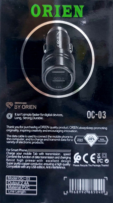 شارژر فندکی اورین OC-03