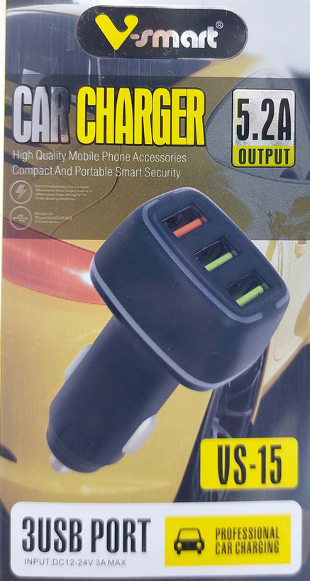 شارژر فندکی وی اسمارت مدل vs-15، در واقع یک شارژر تلفن همراه است که به جای پریز برق به پریز فندک خودرو وصل میشود، بنابراین با انرژی باتری خودرو میتوان آنها را به پریز برق وصل کرد، تلفن همراه مانند یک شارژر عالی باتری را شارژ میکند. اغلب افرادی که به دلیل شرایط کاری زیاد رانندگی میکنند به این شارژر فندکی سه پورت نیازمندند.