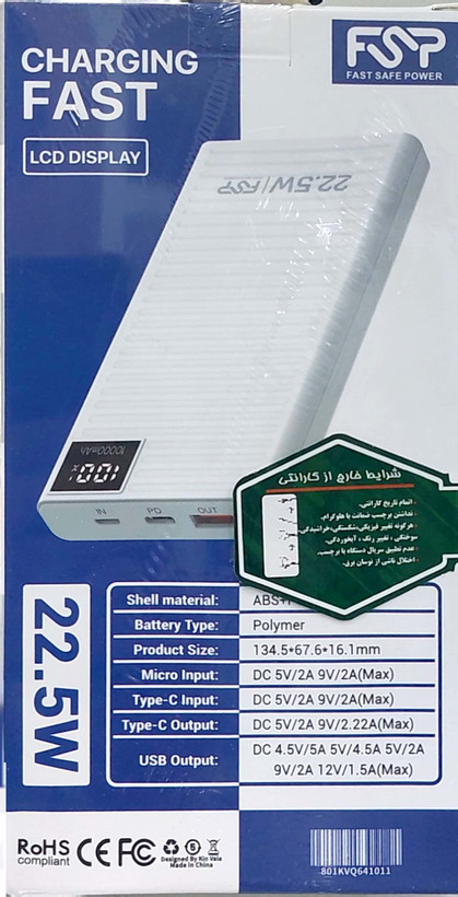 پاوربانک 10000 فست شارژ 22.5W برند FSP مدلPD_04
