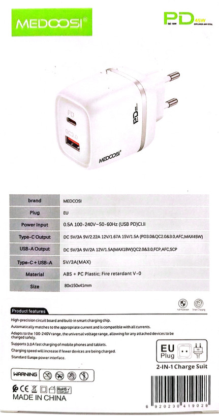 خروجی نوع CDC 5V/3A 9V/2.22A 12V/1.67A 15V/1.5A (PD3.0&QC2.0&3.0.AFC.MAXASW)