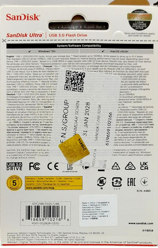 فلش مموری سن دیسک مدل CZ48 ظرفیت 32 گیگابایت usb: 3.0