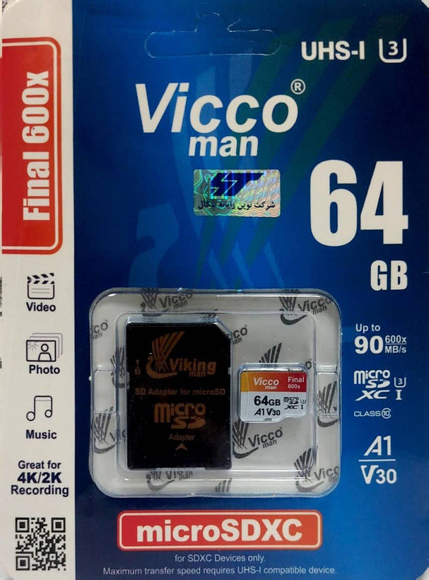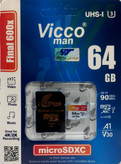 کارت حافظه میکرو ۶۴ گیگ ویکومن Vicco Man Final 600x Plus U3 90MB/s با آداپتور SD