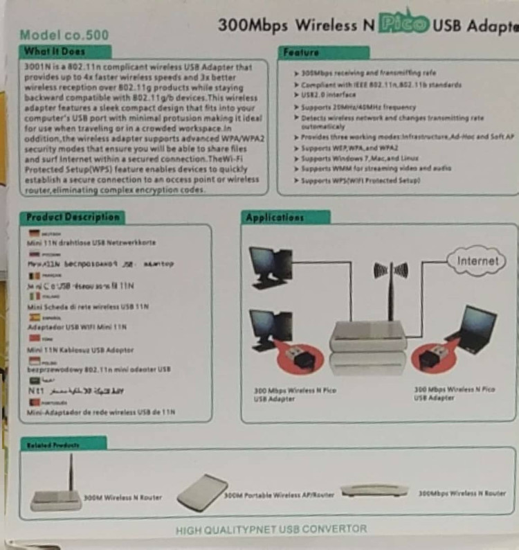 کارت شبکه USB پی نت ALPHA مدل co.500، از نوع کارت شبکه بی سیم بدون آنتن می باشد و توان انتقال داده ها را با سرعت 300 مگابیت بر ثانیه دارد که مناسب برای مصرف روزمره و خانگی و دفاتر کوچک کاربرد دارد. این کارت شبکه از استانداردهای استانداردهای 802.11n/g/b پشتیبانی کرده و به شما اجازه می دهد تا با شبکه های بی سیم مختلف به راحتی ارتباط بگیرید. همچنین از دیگر مزایای این کارت شبکه می توان به قابلیت رمزنگاریهای WPA/WPA2 پشتیبانی میکند که امنیت ارتباط های بیسیم شبکه را بالا میبرد.