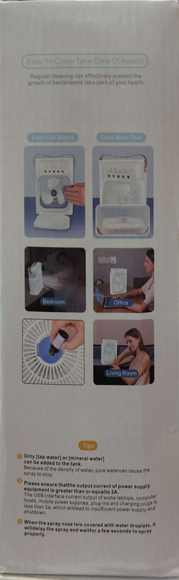 یک چراغ LED در این پنکه قرار دارد که دارای 7 رنگ مختلف بوده که میتوانید با فشردن دکمه چراغی که بر روی بدنه محصول تعبیه شده است، رنگ مورد علاقه خود را انتخاب کرده و یا آن را در حالتی قرار دهید که رنگهای مختلف آن را به شکل گردشی ببینید. مخزن آب این پنکه مه پاش، به گونهای طراحی شده است که میتوانید آن را باز کرده و با یک پارچه مرطوب آن را به خوبی تمیز کنید تا از تکثیر باکتریها جلوگیری کرده و از سلامت خود، محافظت کنید. همچنین، بهتر است هنگامی که از مه پاش این پنکه استفاده نمیکنید، آب موجود در مخزن آن را خالی کرده تا از نشت آب و رشد باکتریها جلوگیری شود.