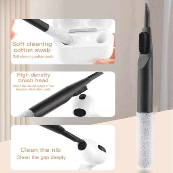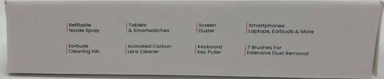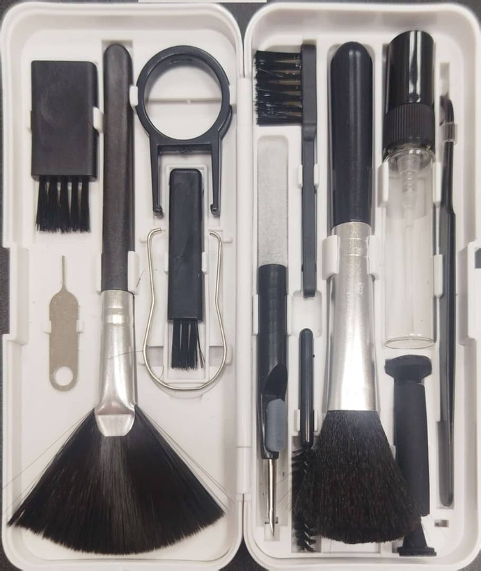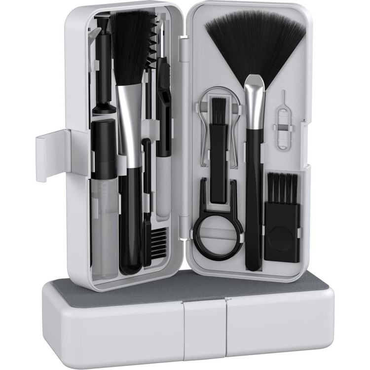 در داخل این جعبه سه نوع برس زبر کوچک و دو برس مویی بزرگ وجود دارد که می توانید از آن ها برای تمیز کردن گوشی موبایل، کیبورد و سایر لوازم الکترونیکی استفاده نمایید. همچنین این محصول دارای دو گیره برای خارج کردن دکمه های کیبورد نیز هست که به شما کمک می کند تا بتوانید کیبوردهای خود را به خوبی تمیز نمایید. این پک شامل یک سوزن سیمکارت، یک قلم تمیز کننده لنز دوربین، یک کیت تمیز کننده ایرپاد، اسپری تمیز کننده صفحه نمایش، یک پنس و یک برس تمیز کننده سوراخ نیز می باشد.
