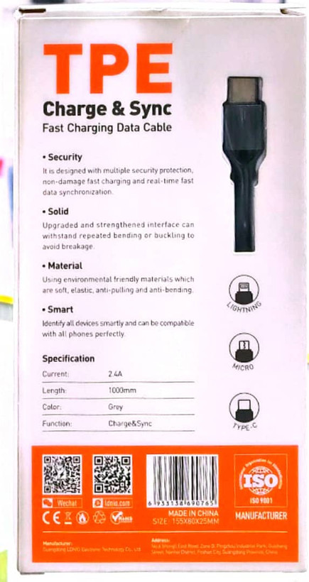 کابل شارژ تایپ سی LDNIO مدل LS441 یک کابل شارژ و انتقال دادههای با کیفیت بالا است که برای گوشیهای هوشمند و تبلتهای دارای پورت Type-C طراحی شده است. این کابل دارای طول 1 متر است و از روکش TPE مقاوم در برابر پارگی و خمیدگی ساخته شده است.