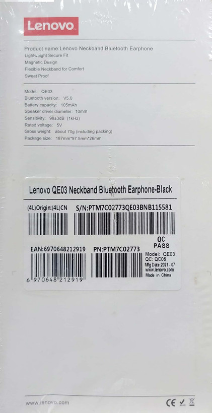 هندزفری بیسیم دور گردنی لنوو Lenovo QE03 Bluetooth Wireless Earphone یکی از انواع هندزفری بلوتوثیهای تولید شده توسط شرکت لنوو است که دارای کیفیت صدای مثالزدنی بوده و در سطح بالایی قرار دارد. از ویژگیهای صوتی این هندزفری میتوان به باس عمیق، ارگونومی عالی، طول عمر باتری بالا، برقراری مکالمه HD اشاره کرد. هندزفری Lenovo QE03 دارای فرمی فلزی است و همین امر کمی آن را در برابر ضربه و فشار مقاوم میسازد و کاربری خوبی را نیز به شما میدهد. وزن هندزفری در کل به چیزی حدود 31 گرم میرسد که خیلی زیاد نیست و استفاده طولانیمدت از هندزفری باعث خستگی شما نمیشود. افزون بر این موارد باید گفت که دو سرگوشی این هندزفری دارای خاصیت آهنربایی هستند. دو طرف لنوو QE03 به غیر از کابلها بهگونهای متقارن طراحیشده که این موضوع بهخوبی باعث ثابت باقی ماندن هندزفری روی گردن میشود بهرهمندی از نسخه 5 بلوتوث در هندزفری بیسیم دور گردنی لنوو، ویژگیهایی نظیر به حداقل رسیدن تأخیر در انتقال، صدای باکیفیت بالا، پایداری سیگنال و برد وایرلس تا شعاع 10 متر را تضمین میکند. روی لنوو کلیدهایی فیزیکی قرار دادهشده است که میتوانید با استفاده از آنها موزیک در حال پخش را بهراحتی کنترل کرده و لزوماٌ از گوشی خود برای این کار استفاده نکنید.