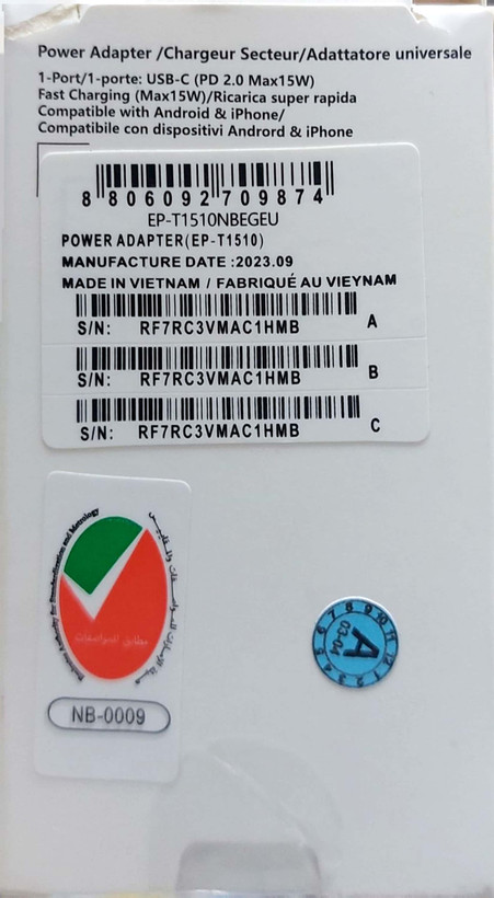 کلگی شارژر سامسونگ 15وات اصلی پکدار مدل EP-T1510NBEGEU