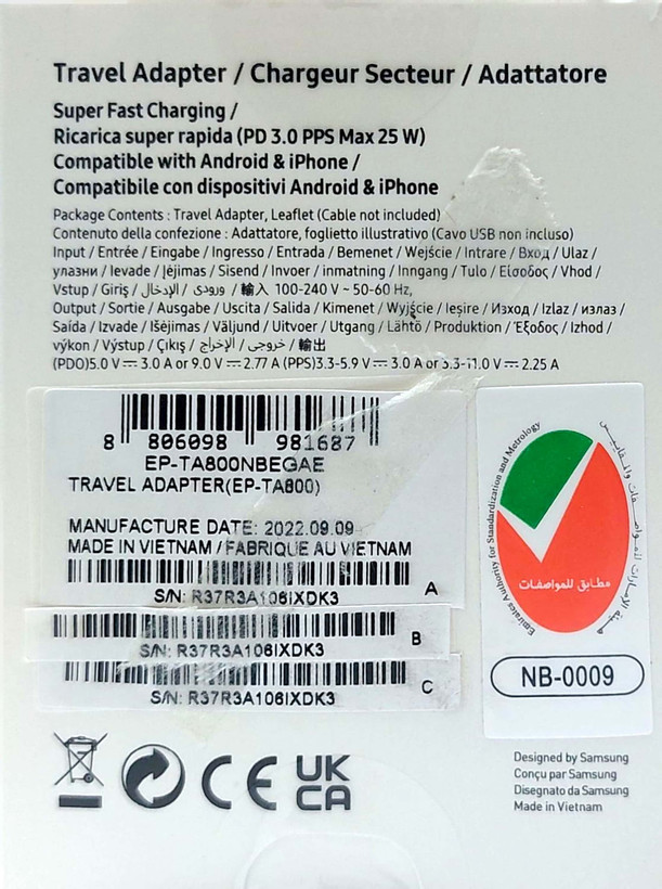 این کلگی فست شارژ اورجینال دارای کانکتور سه پین است که برای اتصال به پریزهای برق شهری در ایران نیاز به تبدیل دارد و با پشتیبانی از ولتاژ ورودی ۱۰۰ تا ۲۴۰ ولت و ولتاژ خروجی حداکثر ۱۲ ولت، قادر به شارژ گوشی های تلفن همراه سامسونگ و دیگر دستگاه های هوشمند سازگار با پورت تایپ سی می باشد.