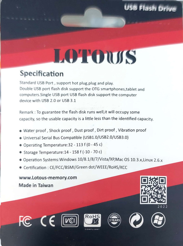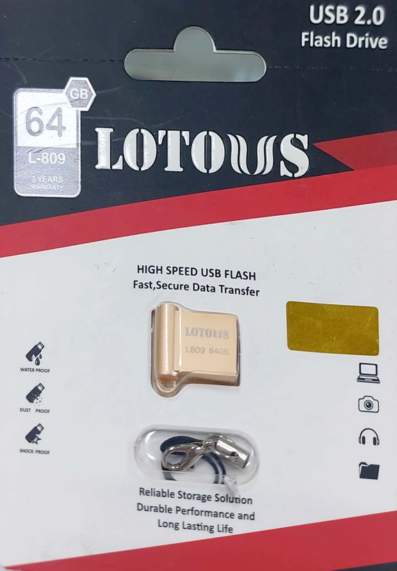 فلش مموری لوتوس مدل L809 دارای ظرفیت 64 گیگابایت می باشد و دارای کیفیت و طراحی ساخت مناسبی است. بدنه آن از جنس فلز بوده و دارای یک بند جهت نگهداری آسان تر فلش می باشد. از طریق پورت USB به دستگاه هایی که از این درگاه پشتیبانی می کنند متصل می گردد.