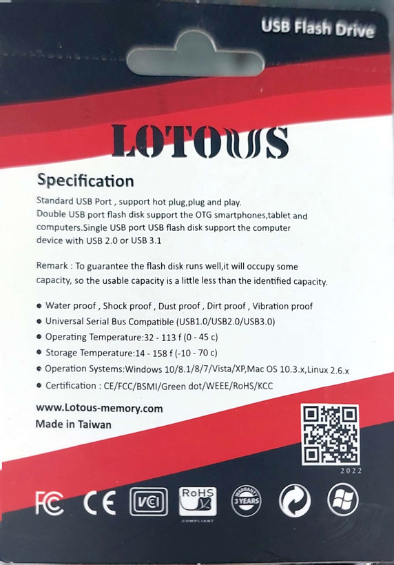 یک محصول با کیفیت از برند لوتوس است که 16 گیگابایت ظرفیت دارد جنس بدنه فلزی و یک زنجیر کوچک برای آویزان کردن، به همراه آن ارائه می شود. این فلش مموری از کیفیت بالایی برخوردار بوده و در مقابل آب ، شوک و لرزش و گرد و غبار مقاوم است.این فلش مموری از سری فلش های یو اس بی 3.2 میباشد و میتواند سرعت انتقال دیتا را تا 30 مگابایت بر ثانیه افزایش بدهد. این محصول دارای گارانتی 36 ماه میباشد.و همچنین میتوانید از این سیستم محصول برای ضبط های ماشین و انواع پخش کننذه های خانگی و شارژی همراه قابل استفاده است.