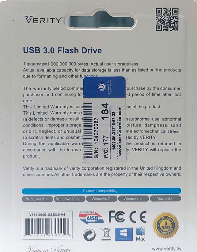 فلش ۶۴ گیگ وریتی VERITY V811 64GB USB3.0