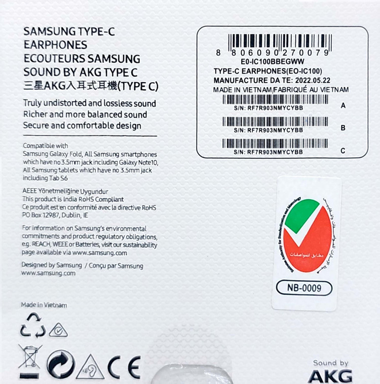 SAMSUNG Type-C Earphones Model EO-IC100BBEGWW
